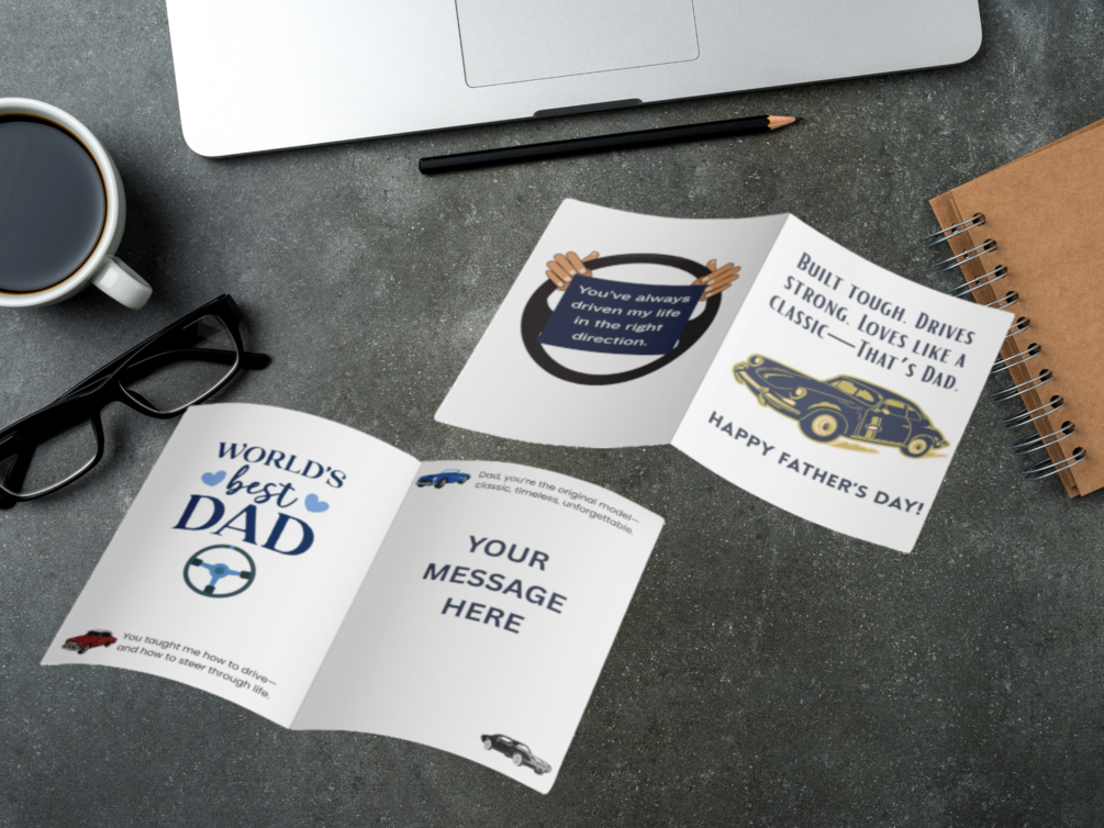 Start Dad’s engine this Father’s Day with a sleek, stylish card made just for car enthusiasts! Whether he’s a classic car collector, a weekend cruiser, or just can’t resist a good engine roar, this card is the perfect way to celebrate the man who’s driven by love and horsepower.